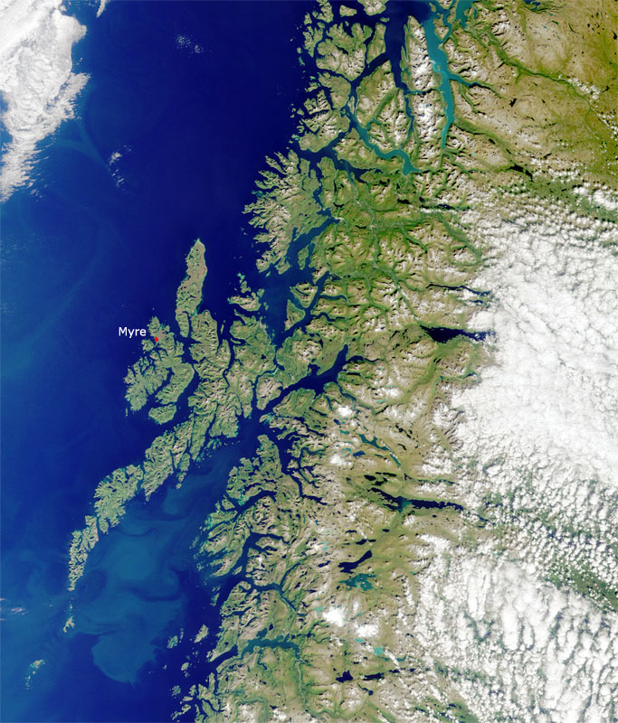 Satellittbilde av Vesterålen, fotografert 20. august 2001 av MisrTeam/NASA.